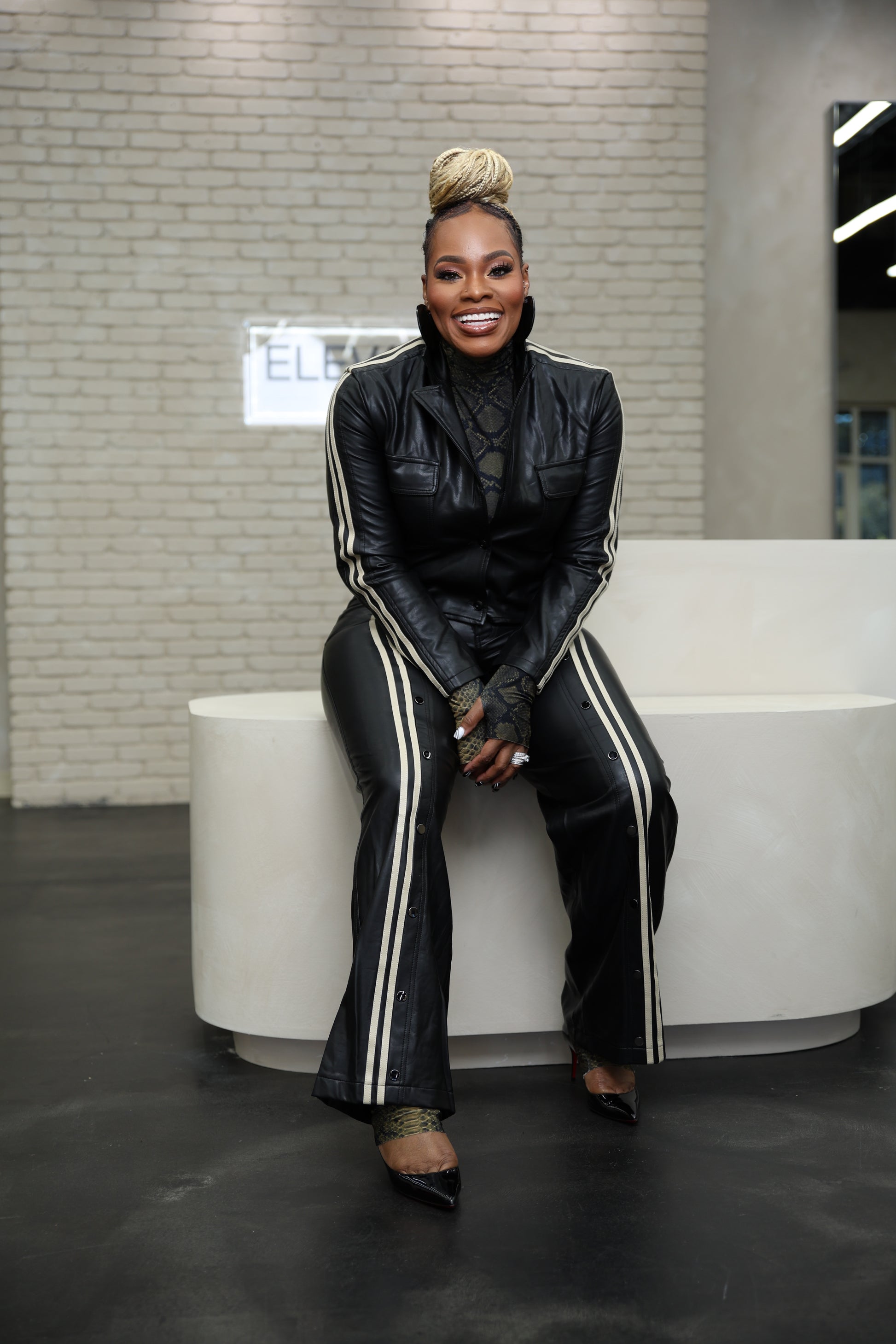 Make a statement in this sleek two-piece track set crafted from premium PU faux leather. The cropped bomber jacket features a classic zip-front closure and striking gold racing stripes down the sleeves, while the matching wide-leg pants showcase the same eye-catching stripe detail and snap-button closures along the sides for added edge. This contemporary athleisure set perfectly balances sporty functionality with street-style sophistication. The luxe faux leather construction offers durability and a polished finish that elevates any casual look.